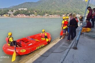 Crime Desk@ DN Rishikesh: मुनिकीरेती थाना क्षेत्र अंतर्गत नाव घाट पर नहाने के दौरान अलवर राजस्थान का एक पर्यटक गंगा में डूबने लगा। जल पुलिस के जवान सुभाष ध्यानी की टीम ने पर्यटक को गंगा में डूबने से बचा लिया। इंस्पेक्टर रितेश शाह ने बताया कि पहाड़ों में लगातार हो रही बारिश के चलते गंगा का जलस्तर कभी कम और कभी ज्यादा हो रहा है। ऐसे में गंगा नहाने वाले श्रद्धालुओं और पर्यटकों को सतर्कता से गंगा स्नान करने के लिए आगाह किया जा रहा है। जल पुलिस की टीम लगातार मुनादी कर लोगों को जागरूक करने का काम कर रही है। आज नाव घाट पर अलवर राजस्थान से कुछ पर्यटक नहाने के लिए पहुंचे। जिनमें शामिल गोविंद गोयल अचानक गंगा की गहराई में डूबने लगा। नजर पड़ते ही जल पुलिस की टीम ने गोविंद गोयल को गंगा में डूबने से बचा लिया। बता दे कि गंगा में पर्यटक के डूबने की वीडियो सोशल मीडिया पर वायरल हुई है।